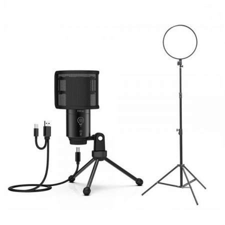 • [FIFINE] PC 스마트폰 겸용 마이크 조명 개인방송 장비 세트 E 온라인 수업 씨타입 룩스패드 알패드 FIFINE K433A